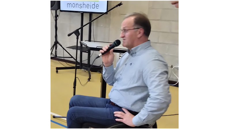 In de sporthal van Monsheide waren zo’n 100 mensen verzameld toen Mieke Slenders om 18 uur het woord nam. Zij zou de festiviteiten in goede banen leiden. Als eerste kondigde ze Guido Roex aan, intussen kernverantwoordelijke van GSVT Monsheide en tevens bezieler van ‘De Warmste Tandemtocht’.