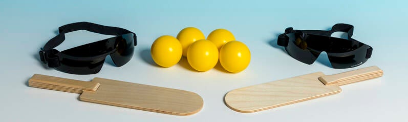 Showdown is een van de weinige sporten die mensen met een visuele beperking individueel kunnen beoefenen. Het ziet er uit als een vorm van tafeltennis en wordt daarom vaak omschreven als ‘tafeltennis voor blinden’. Op een GSVT-kalender uit 1986, destijds verkocht ten voordele van de club, vonden we op het blad van oktober onderstaande foto.